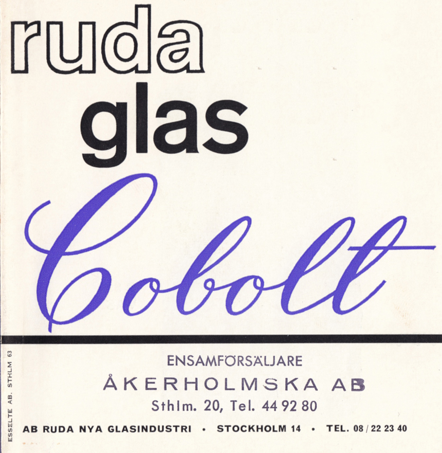 Göte Augustsson var tredje generasjon glassarbeider ved Ruda. Omkring 1960 jobbet han med Cobalt-serien i så kalt «kolsnittsteknik». Augustsson graverte direkte i former av kull der glass ble blåst eller presset i. Teknikken var rimelig, men formene ble fort slitt og måtte lages på ny. Det førte til at hvert eneste glass på en måte ble unikt.